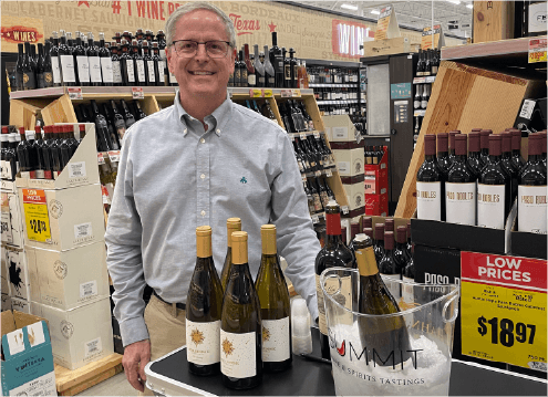 Summit is proud to partner with grocery chains like H-E-B, Central Market, Kroger, Market Street, Tom Thumb, and Whole Foods. We also enjoy promoting our clients’ brands in Spec’s and Total Wine & More. No matter where we go, we always wear a smile and invite customers to have a sip and take a few bottles home.